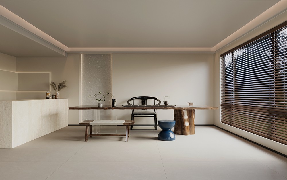 在灰色的主旋律下自帶偏暖調(diào)的棕,迷蒙的肌理明暗交纏,隱約中似是微波蕩漾的湖面,泛起點(diǎn)點(diǎn)漣漪,無不令人一見傾心。